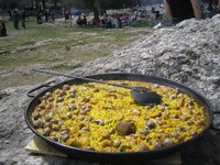 Sie stellen aus einer dicken Zwiebel und drei bis 4 Tomaten einen schönen "Brei" her und diesen also gut zu einer Soße verkochen, mit Olivenöl, Salz und Pfeffer würzen. Dann in einer großen Paella-Pfanne in kleine Stücke geschnittenes Kaninchen anbraten, bis es goldgelb ist. Die Tomaten-Zwiebel-Soße dazu geben und so viel Reis, wie sie möchte hinzufügen, aber nur den runden Paella-Reis.